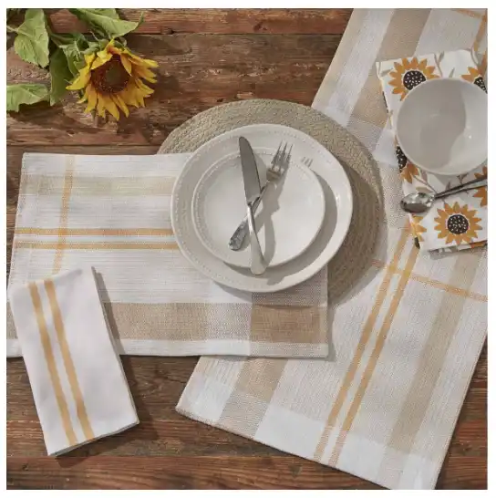 These beautiful cotton Sunflower Plaid Placemats add freshness and warmth to any table setting. This set features a beautiful plaid pattern in honey, gold and cream. The versatile style makes them well-suited to both every day and special-occasion meals.